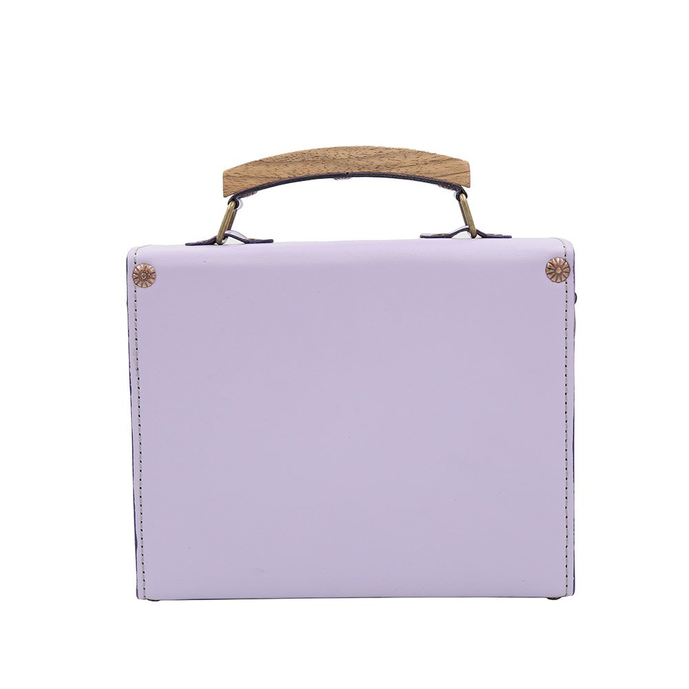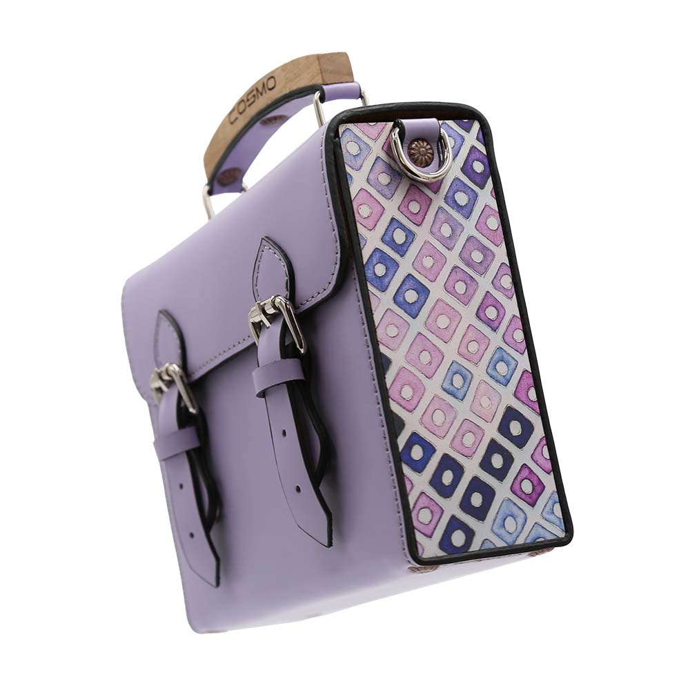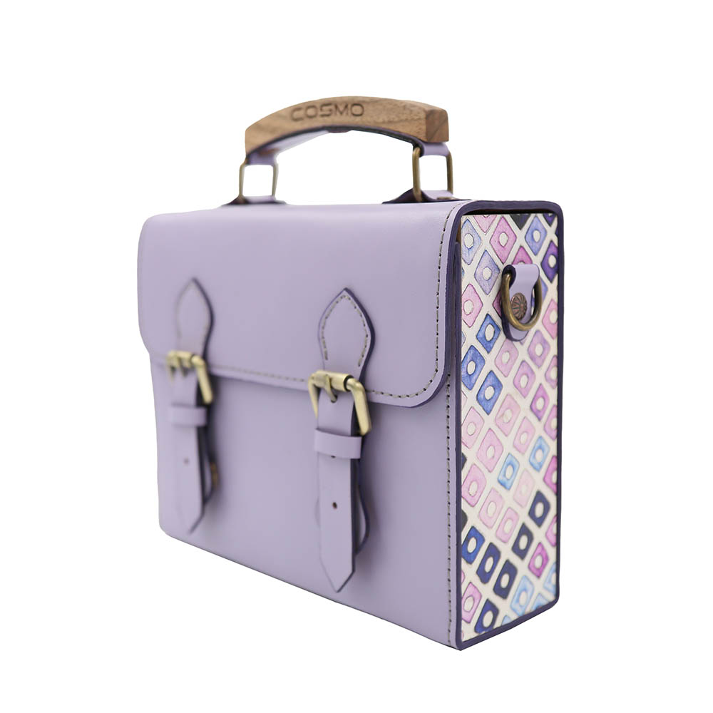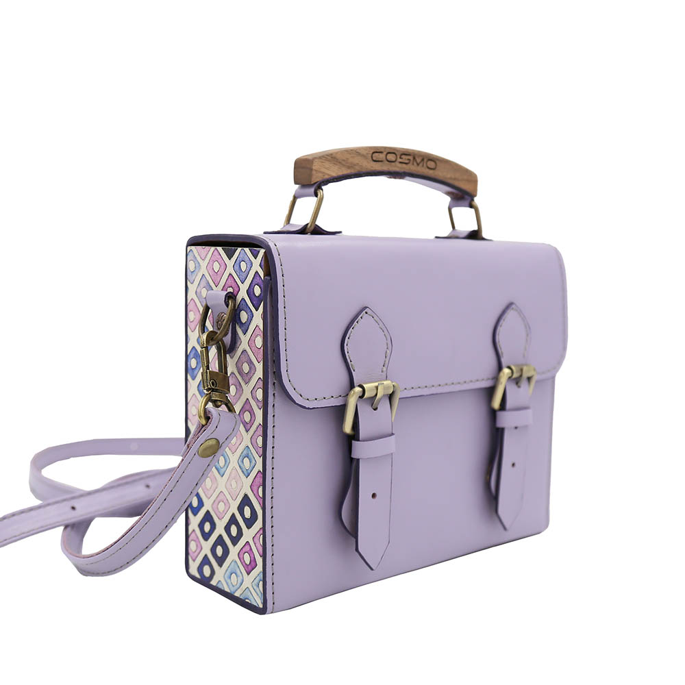 ნატურალური ტყავის და ხის კომბინაციით შექმნილი ჩანთა, რომელიც შთაგონებულია ძველი ქართული ქსოვილის ორნამენტებით