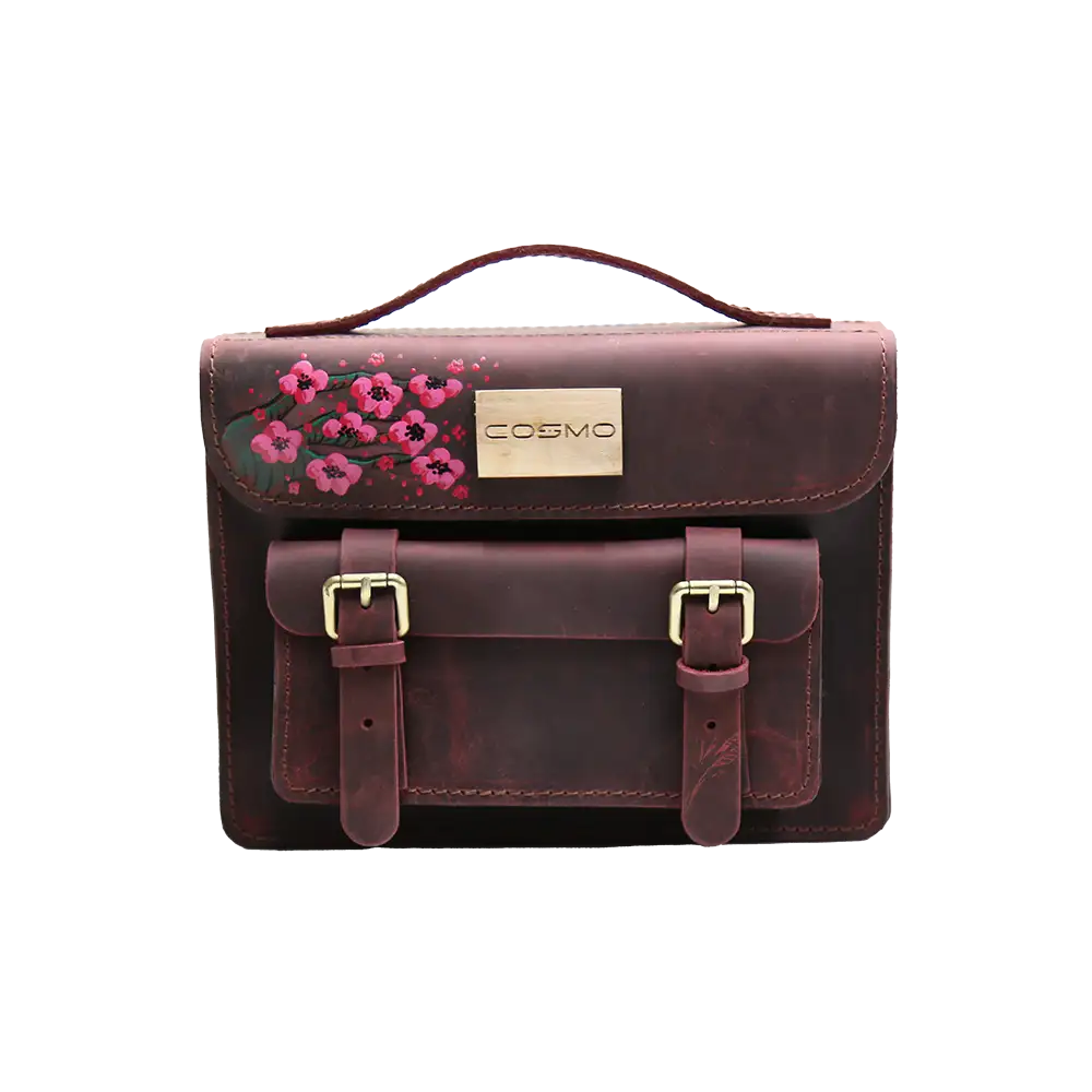 ჩანთა – ლალა ბორდოსფერი ალუბლის ყვავილებით
