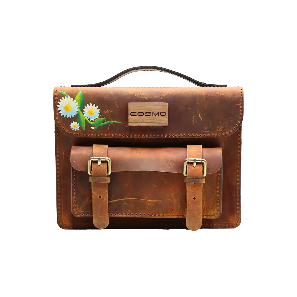 ჩანთა – ლალა ღია ყავისფერი გვირილებით